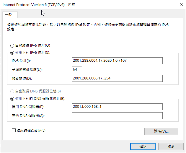 設定IPV6網路位址